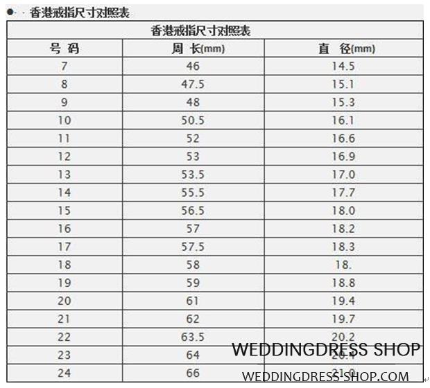 Hong Kong Ring Size Comparison Table