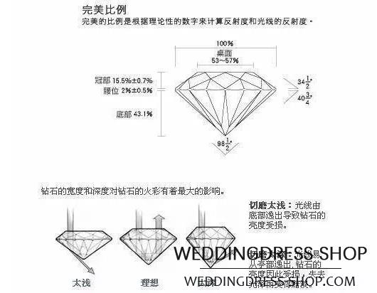 Every diamond is composed of three basic parts: crown, waist, and bottom. The PROPORTION of a diamond refers to the ratio of the diameter of each part of the diamond relative to its waist and the main cutting angle. The correctness of the cutting ratio determines the degree of reflection and refraction of light by diamonds, as well as whether diamonds "ignite", and is therefore one of the important parameters for evaluating diamonds.