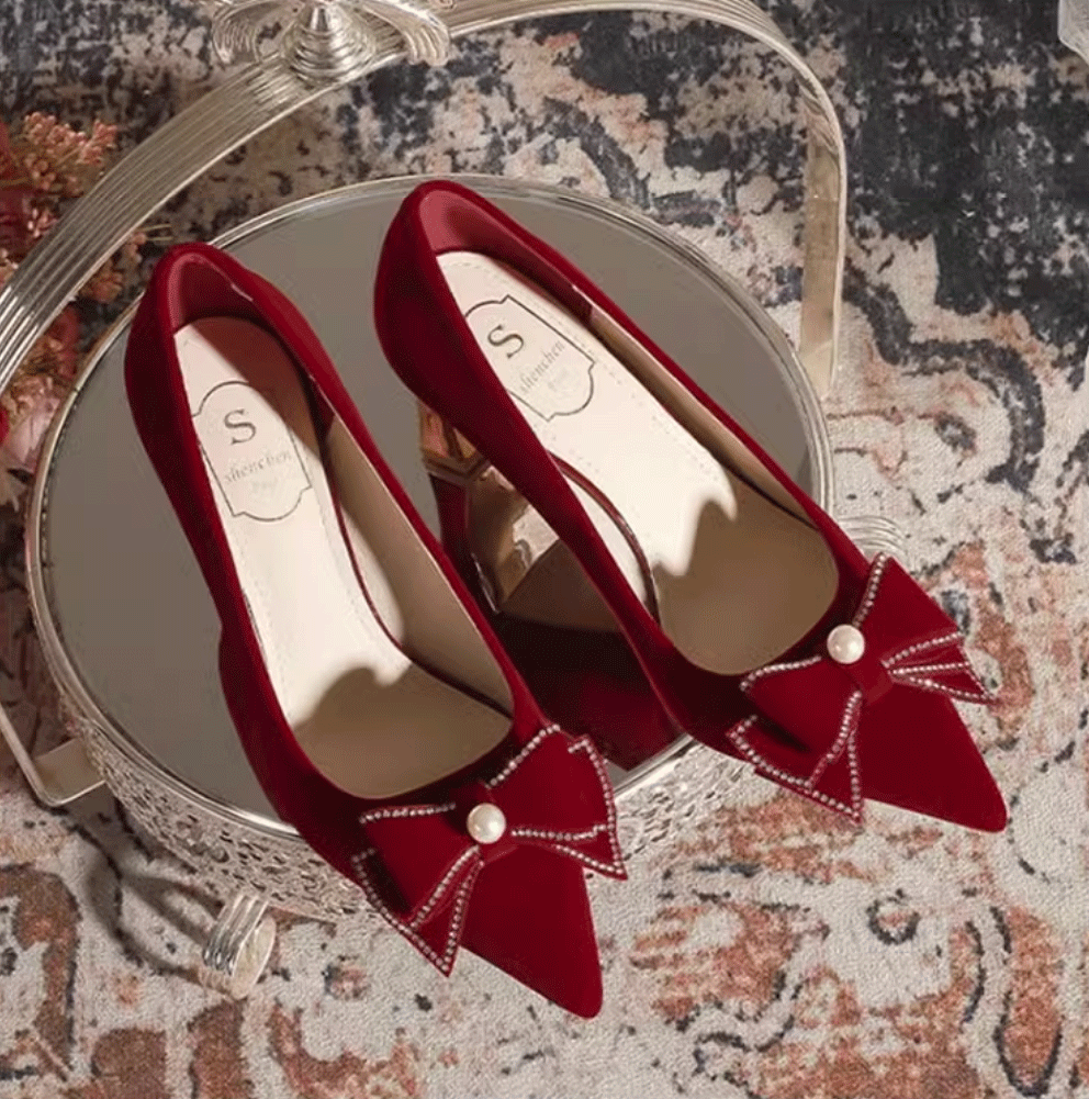 2025 Chinese-Style Red High-heeled Wedding